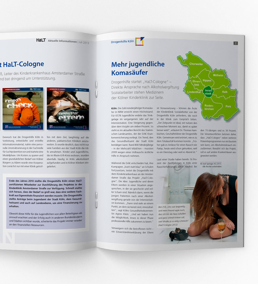 In unregelmäßgen Intervallen macht das Infomagazin der Drogenhilfe Köln e.V. auf die Mißstände mit aktuellen Projekten und Informationen aufmerksam.