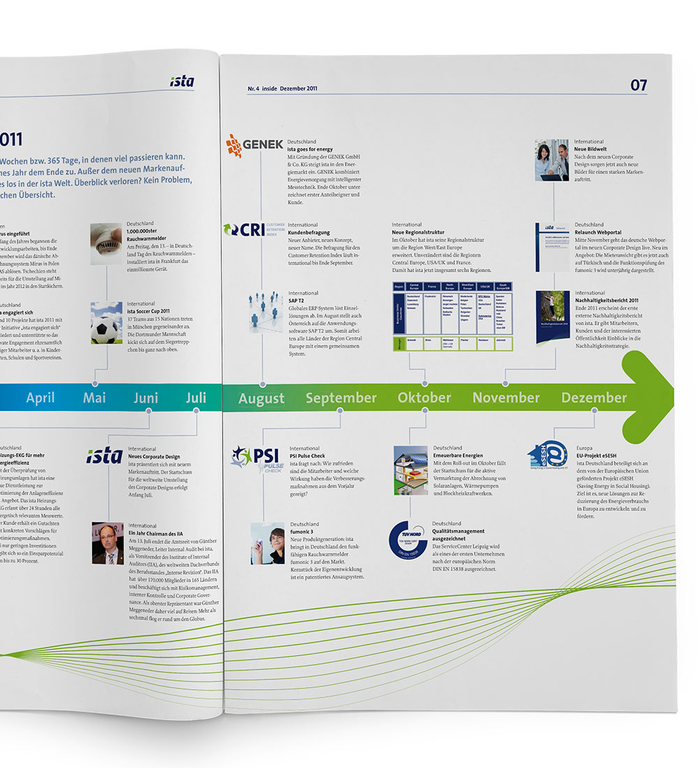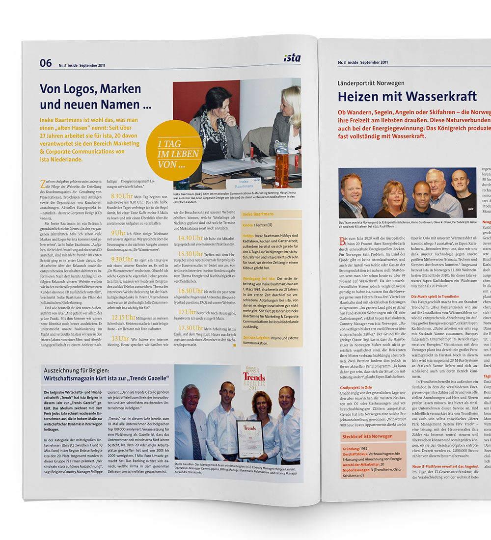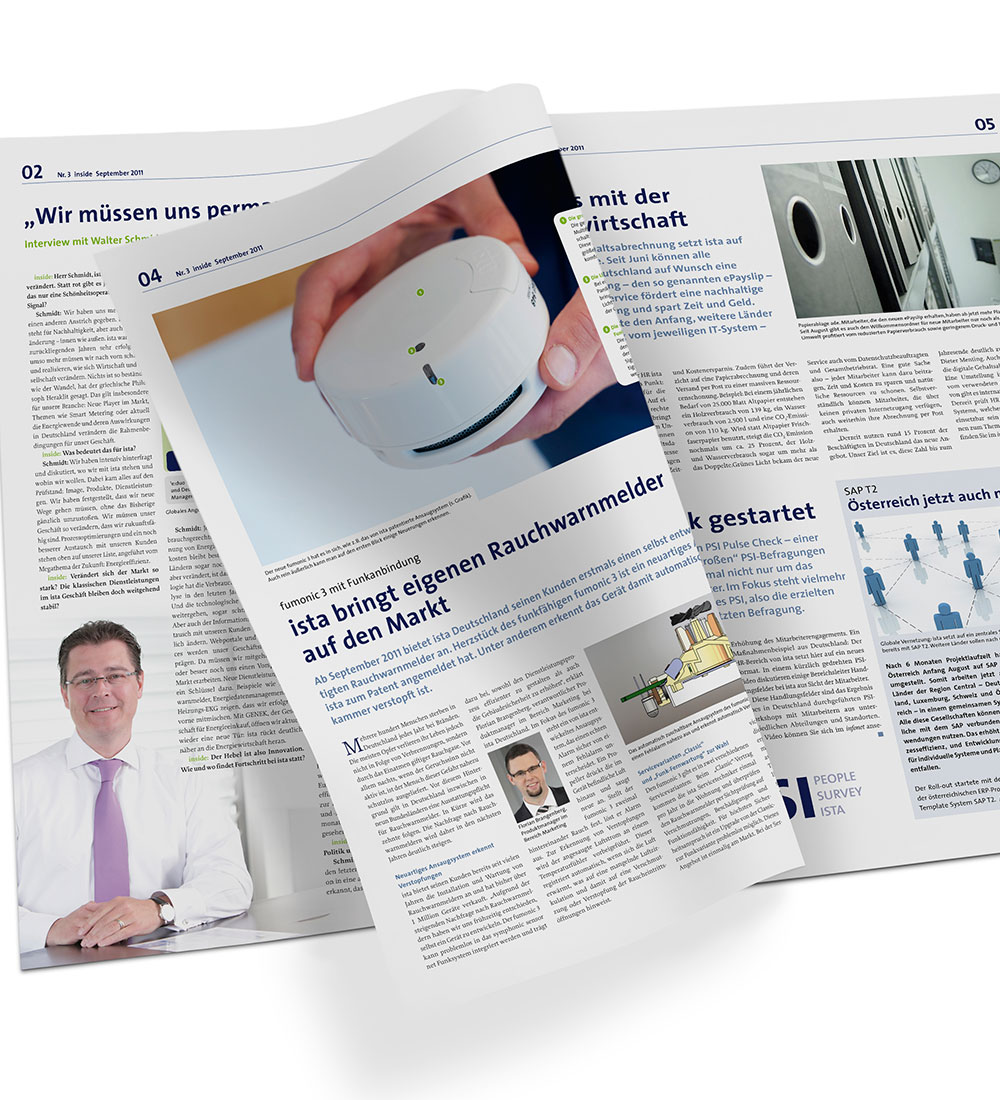 Nach redaktioneller Vorgabe und strikter Einhaltung des Corporate Design enstanden hochwertige Mitarbeiterzeitschriften im Berliner Format. Gleichzeitig dürfte ich auch die englischen Varianten erstellen. Nach Fertigstellung wurden dann die Daten für den Druck aufbereitet und für die Länder Polen und Frankreich Master-Dateien erstellt, damit die jeweiligen Länder die Texte in deren eigenen Sprache editieren konnten.