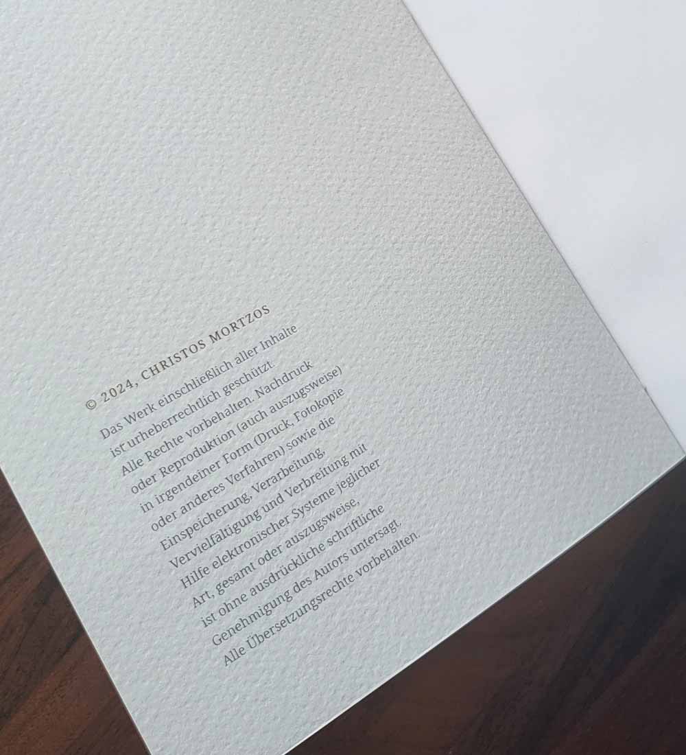 CHRISTOS MORTZOS, geboren 1949 in Athen, studierte Archäologie und Kunstphilosophie in Athen, Tübingen und Paris, wie auch Kunstgesang in Athen, Luxemburg, Köln, Parma und Triest. Er ist als wissenschaftlicher Mitarbeiter bei den Ausgrabungen von Vasiliki Ierapetras (Kreta) und Vryses Kydonias (Kreta) und bei den Archäologischen Abteilungen der Universitäten von Ioannina (Griechenland) und Paris I, Panthéon-Sorbonne tätig gewesen. Von 1986 bis zu seiner Pensionierung arbeitete er als Beamter des Übersetzungsdienstes des Europaparlaments. Derzeit lebt er zwischen Köln und Triest.