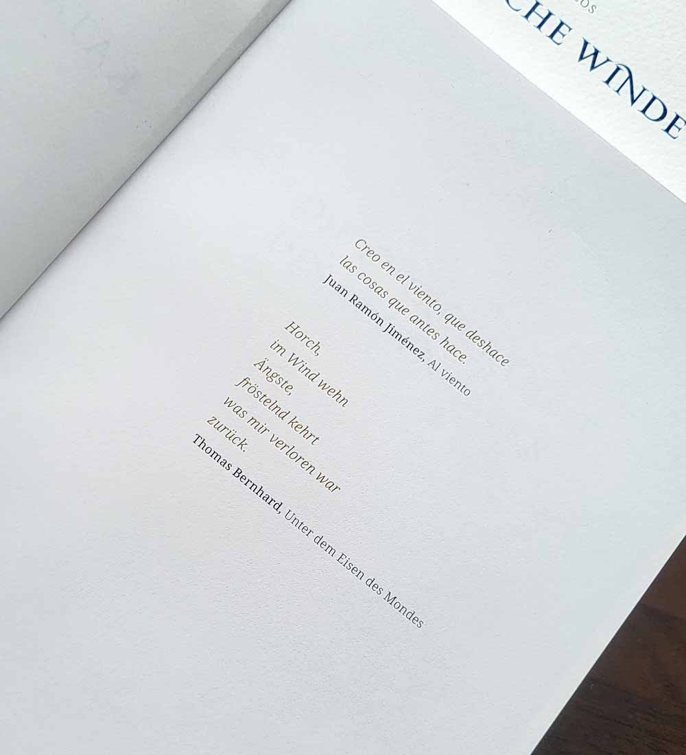 Der Wind, der als ein unsichtbarer, symbolhafter Leitfaden die Textsammlungen dieses Bandes verbindet, ist das Naturelement, das den Autor seit seiner auf einer Insel der Ägäis verbrachten Kindheit stets beeindruckt hat. Es ist vor allem die geheimnisvolle, dunkle Kraft katabatischer Winde, die das Gemüt auf unterschiedlichste Weise beeinflussen kann.