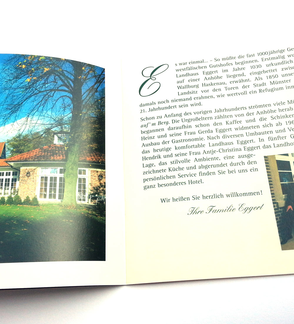 Das 4-Sterne-Hotel Eggert mit seinem besonderem Charme sollte durch eine neue Imagebroschüre nach aussen neu beworben werden.