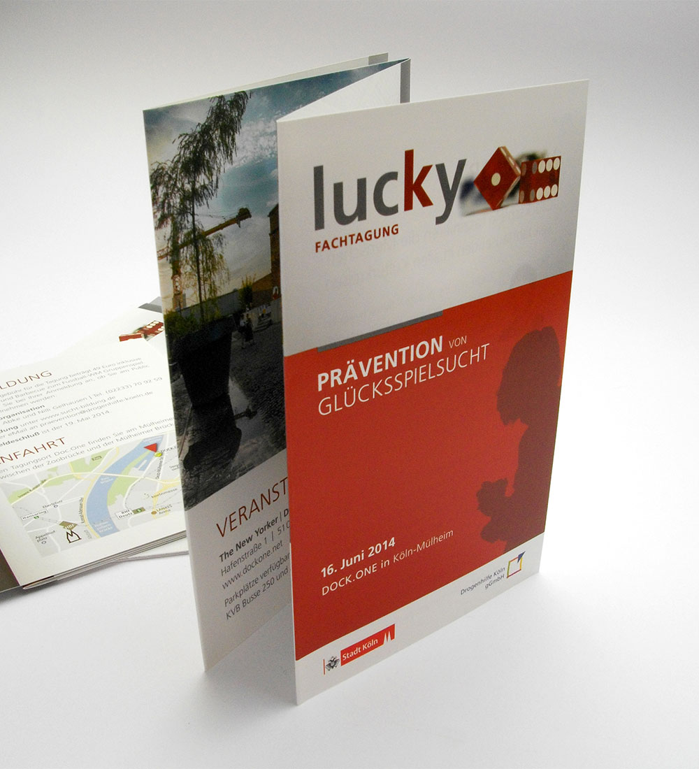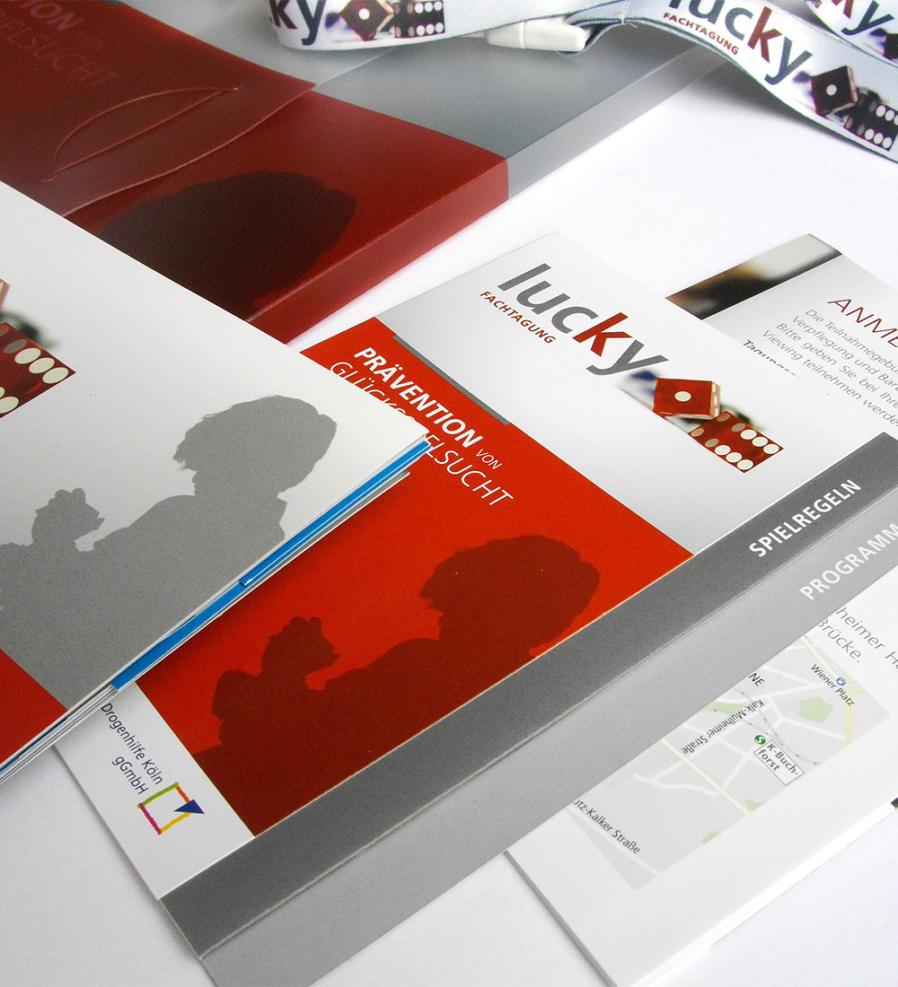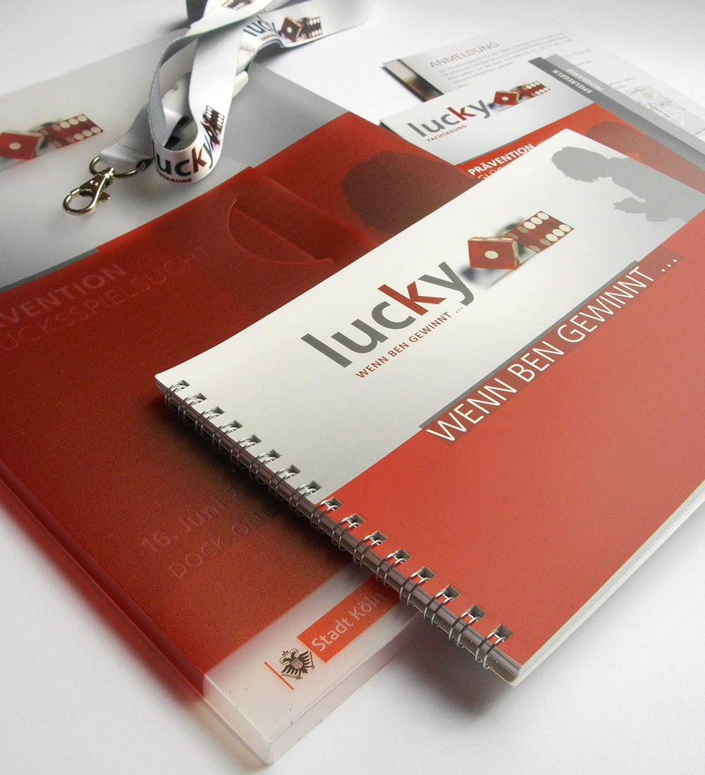 Entwicklung und Konzeption der CI für den Methodenkoffer lucky. Der Methodenkoffer lucky enthält erprobte Methoden zur Glücksspielsuchtprävention für den Einsatz in Schulen, Jugendeinrichtungen und Betrieben.