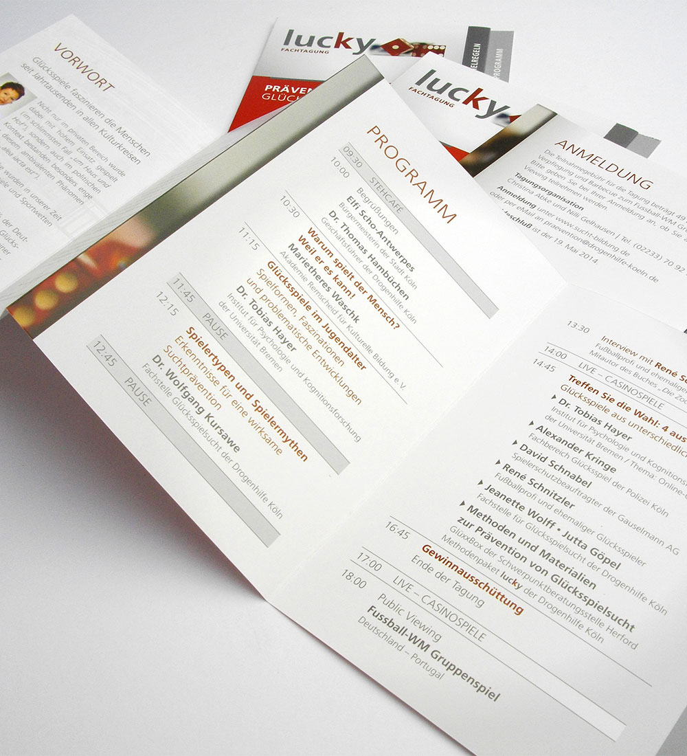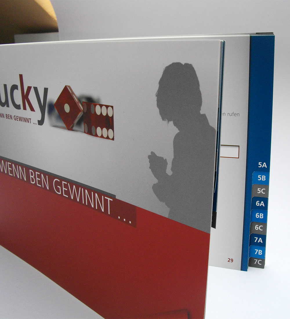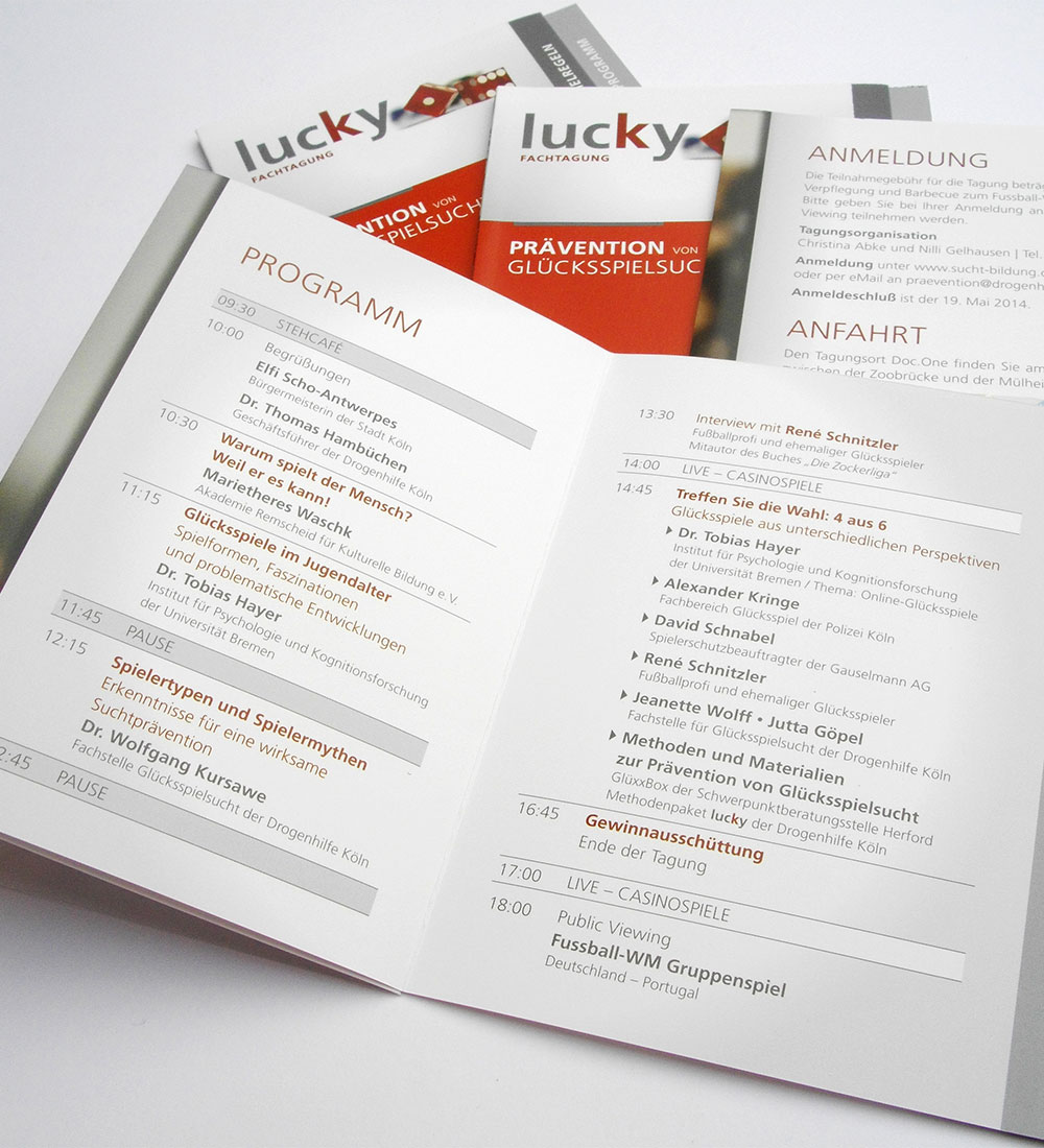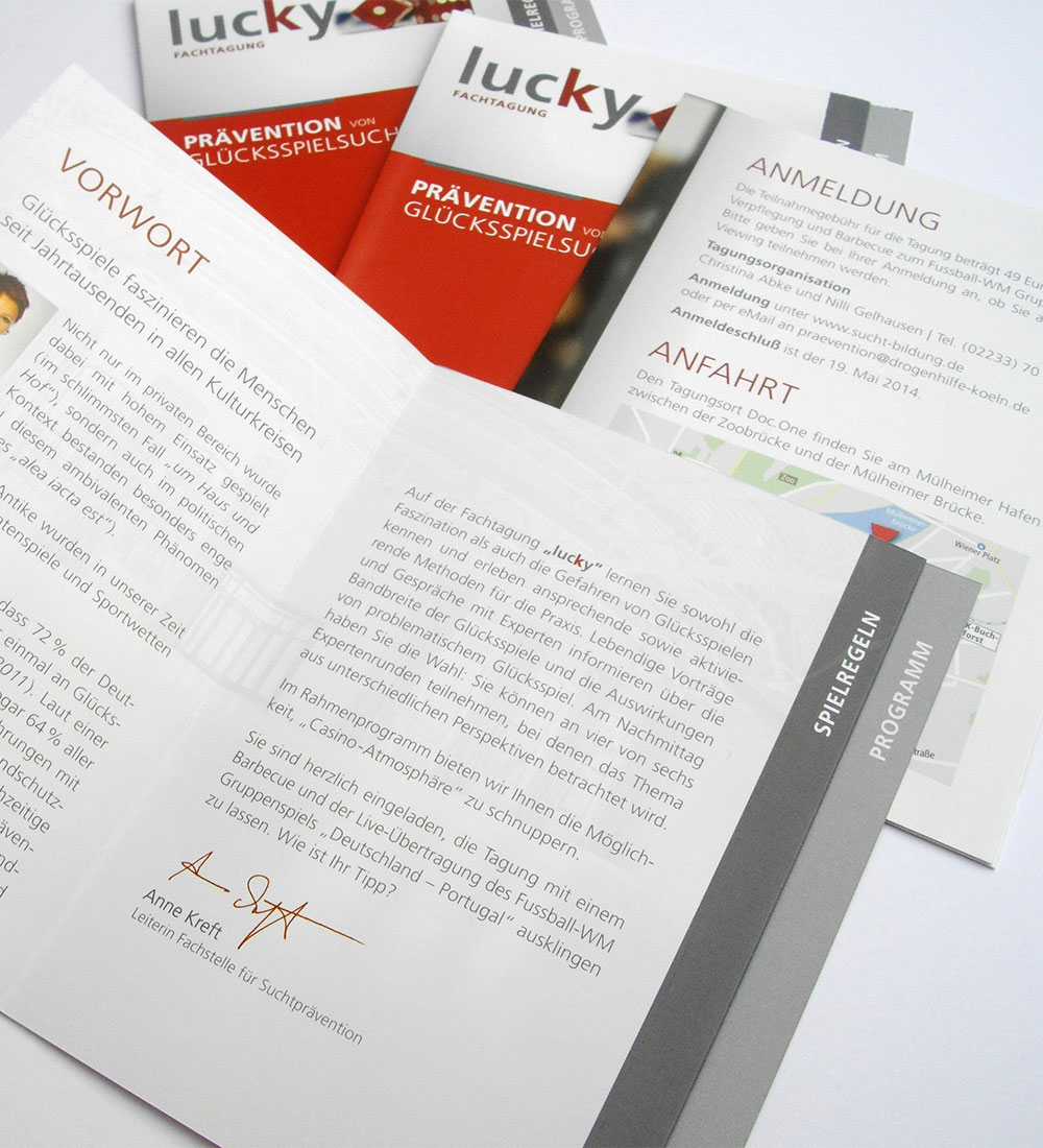 Entwicklung und Konzeption der CI für den Methodenkoffer lucky. Der Methodenkoffer lucky enthält erprobte Methoden zur Glücksspielsuchtprävention für den Einsatz in Schulen, Jugendeinrichtungen und Betrieben.