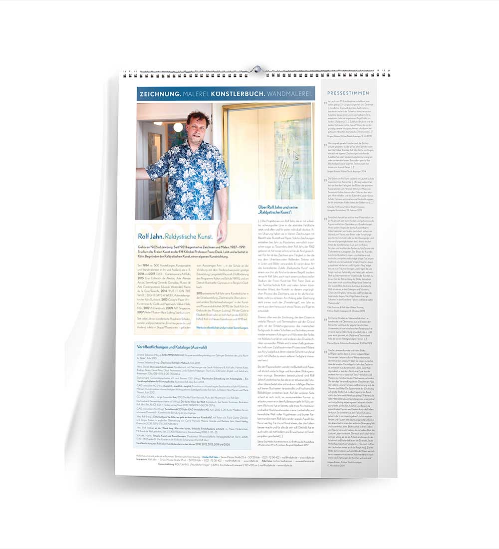 Rolf Jahn hat, wie man als Betrachter seiner Bilder sofort erkennen kann, seinen ganz eigenen Stil entwickelt. Schon als Kind malte und zeichnete er sich in seine eigene Bilderwelt, die ihm viel Kraft gab. Bald fand er für diese wunderbare Art der Katharsis einen Namen: „raldy“. War er „raldy“, war das ein untrügliches Zeichen für seine Familie, dass er gerade malend und zeichnend seelischen Atem schöpfte, um danach gestärkt ins Familienleben zurückzukehren? Viele Jahre später hat er dann im Kunststudium den Begriff der „Raldystischen Kunst“ geprägt, der er sein gesamtes Werk zuordnet.