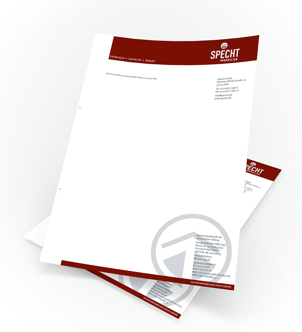 Sepcht Immobilien fokussiert sich auf den Bereich exklusiver Immobilien. Das Erscheinungsbild der Geschäftsausstattung sollte diesen Ansprüchen gerecht und umgesetzt werden.