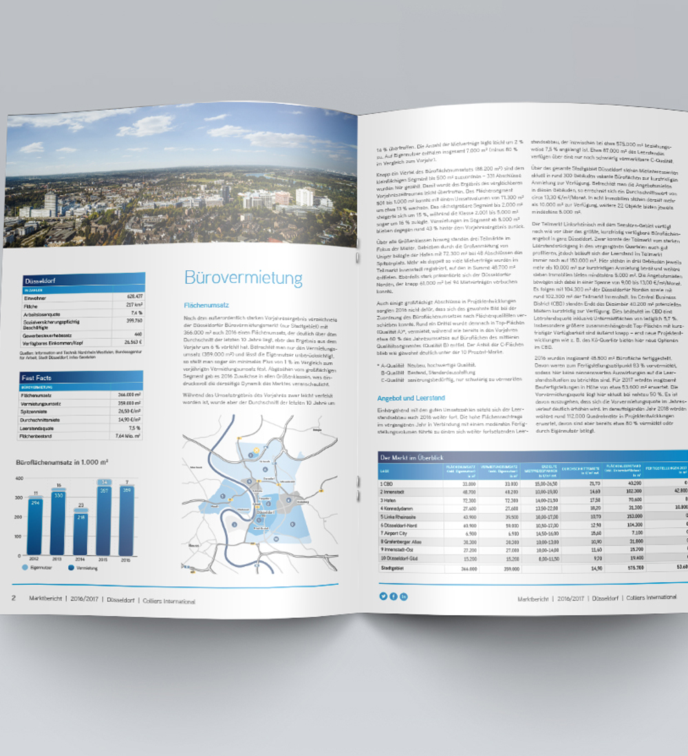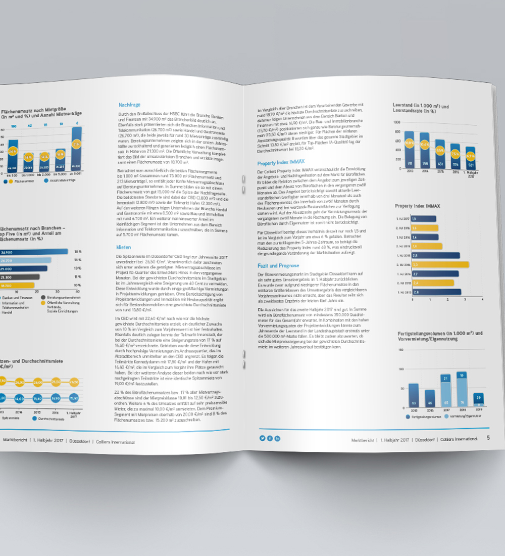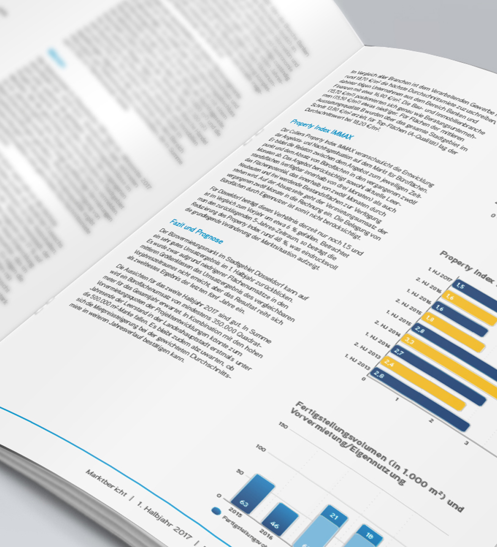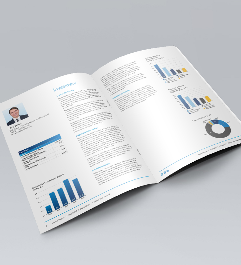 Meine Aufgabe besteht darin anhand des festgelegten CIs die Inhalte, Tabellen und Diagramme nach redaktioneller Aufarbeitung zu layouten bis hin zur fertigen Druckdatei. Der Marktbericht wird in deutscher und englischer Sprache ausgeliefert.