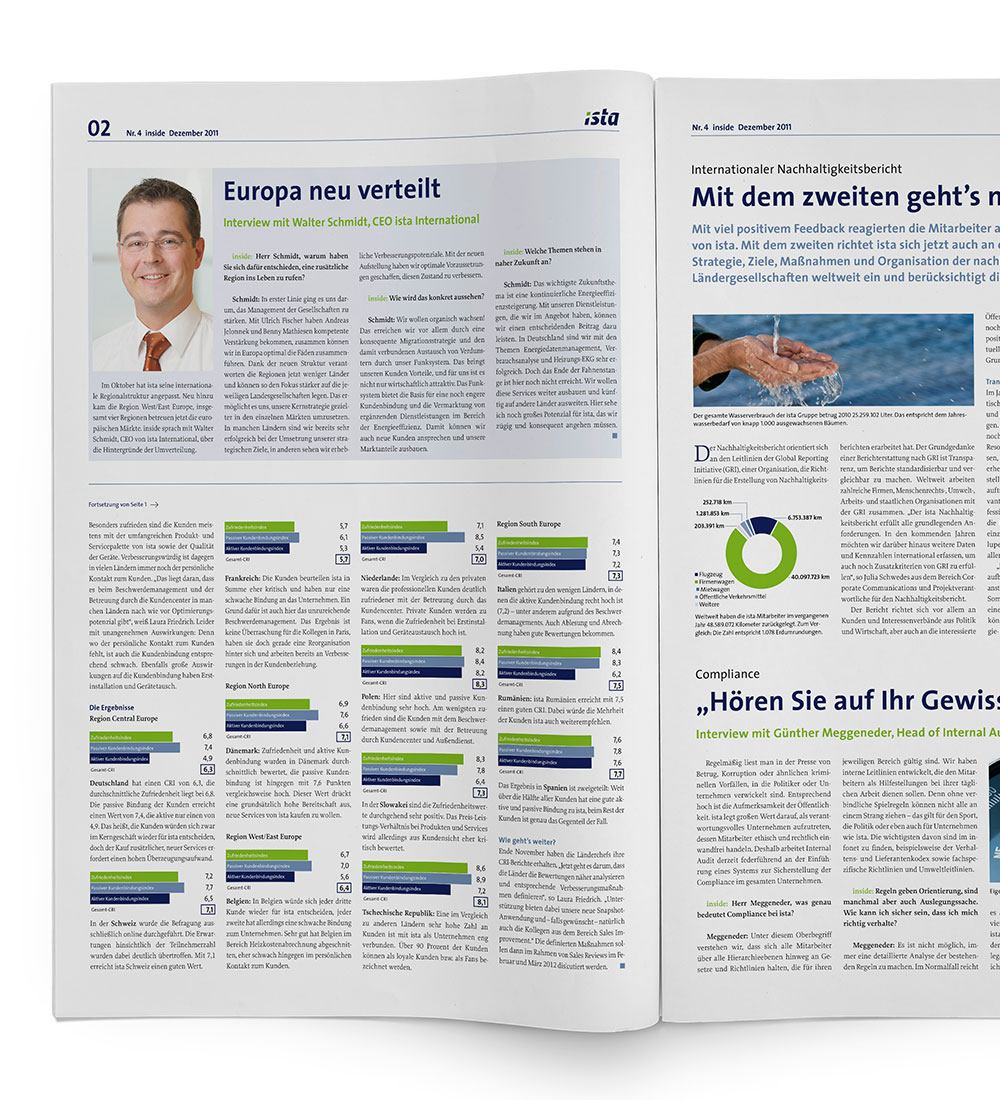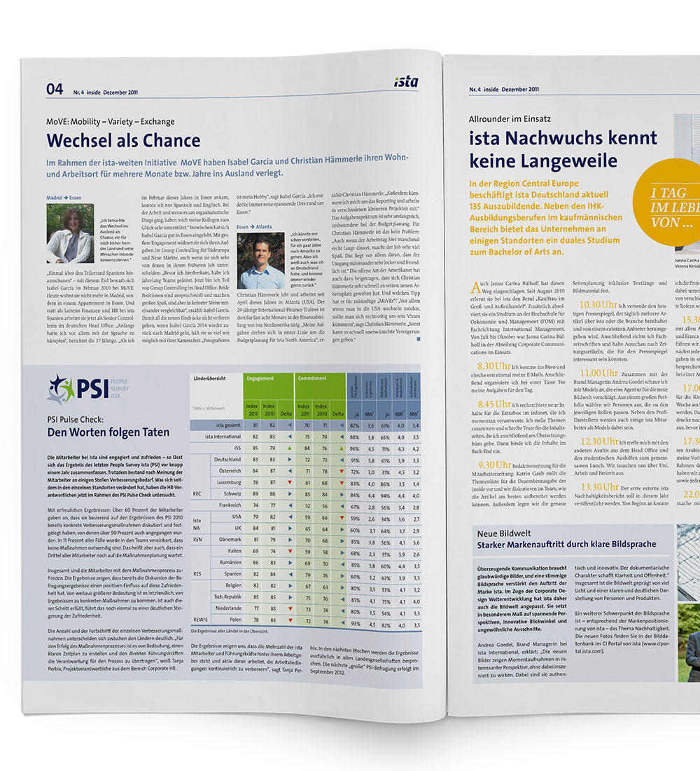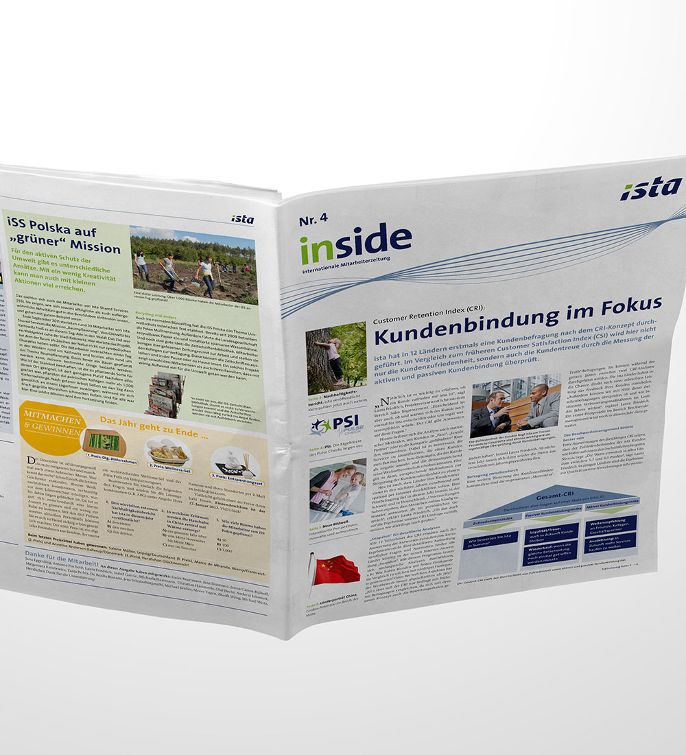Nach redaktioneller Vorgabe und strikter Einhaltung des Corporate Design enstanden hochwertige Mitarbeiterzeitschriften im Berliner Format. Gleichzeitig dürfte ich auch die englischen Varianten erstellen. Nach Fertigstellung wurden dann die Daten für den Druck aufbereitet und für die Länder Polen und Frankreich Master-Dateien erstellt, damit die jeweiligen Länder die Texte in deren eigenen Sprache editieren konnten.