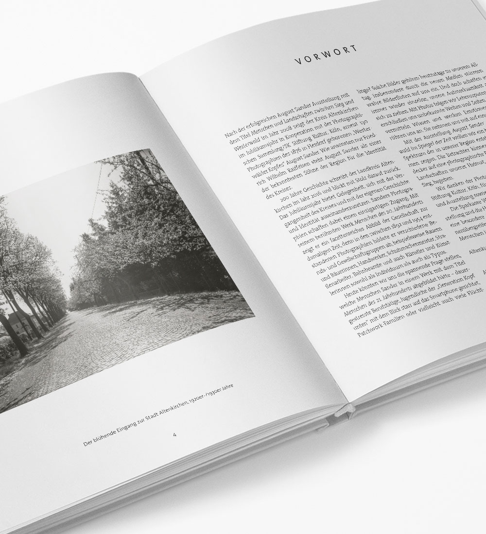 Katalog August Sander - Der Westerwald im Spiegel der Zeit. Herausgegeben von der Kreisverwaltung Altenkirchen, der Sparkasse Westerwald-Sieg in Zusammenarbeit mit Die Photographische Sammlung/SK Stiftung Kultur der Sparkasse Köln/Bonn. Entwurf, Laoyut und Satz.