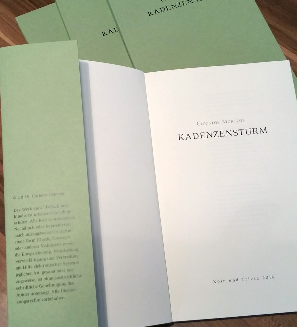 Kadenzensturm - ein weiteres Gemeinschaftsprojekt zusammen mit meinem guten Freund Christos Mortzos. Christos gibt in seinem Handbuch einen sehr intimen, persönlichen Einblick in einen Teil seiner Lebensgeschichte. Wie immer eine Freude, das Geschriebene auch typografisch in Szene zu setzen.