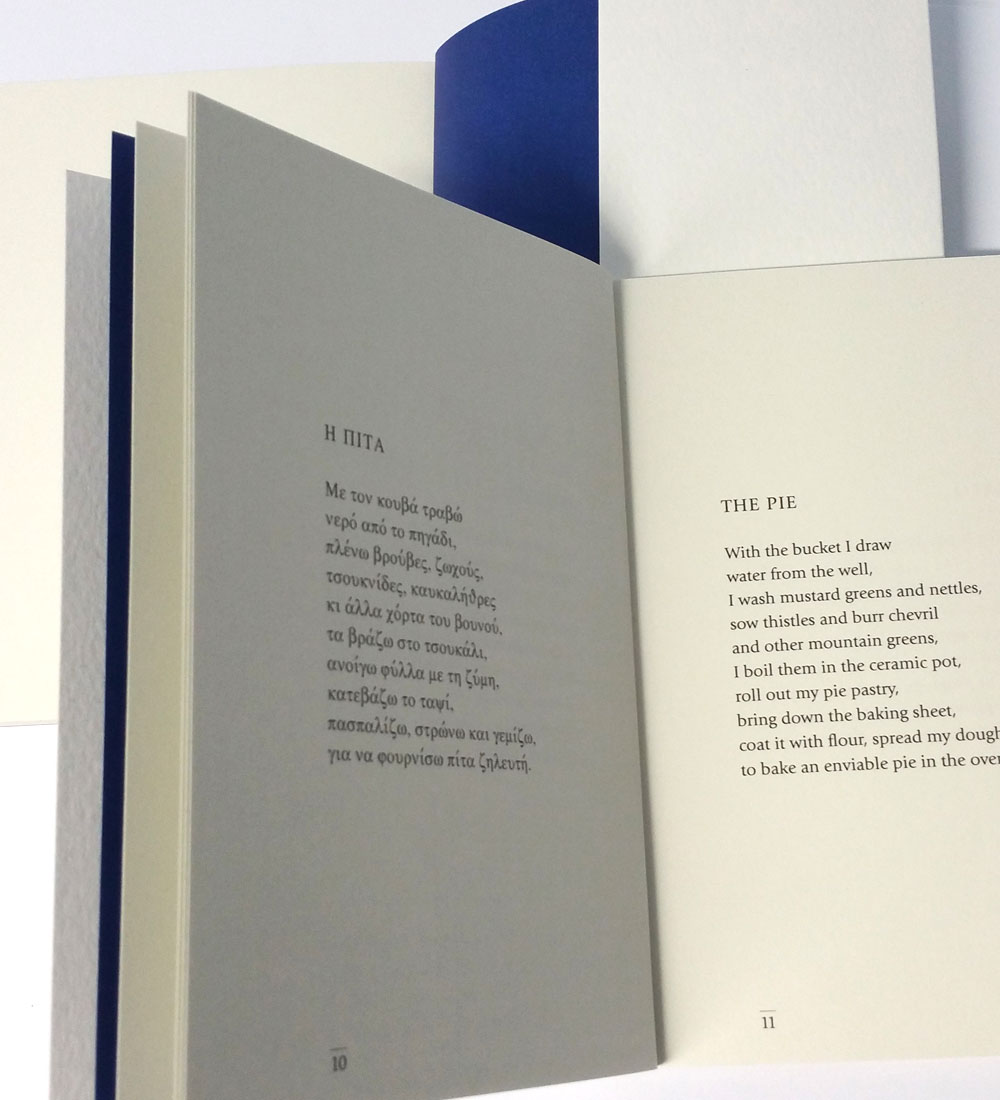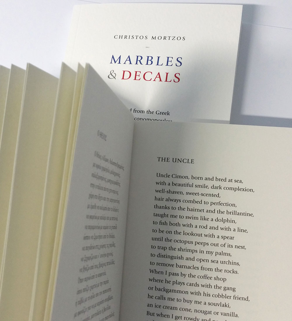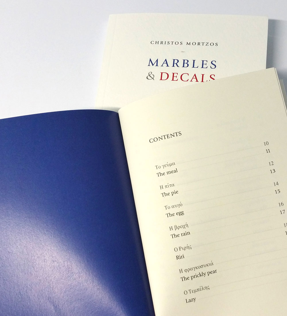 Die aus dem Neugriechischen ins Englische von Marietta Economopoulou übersetzten Texte dieser Sammlung liegen schon in einer französischen und einer deutschen Übersetzung ("Murmeln und Abziehbilder") vor.
