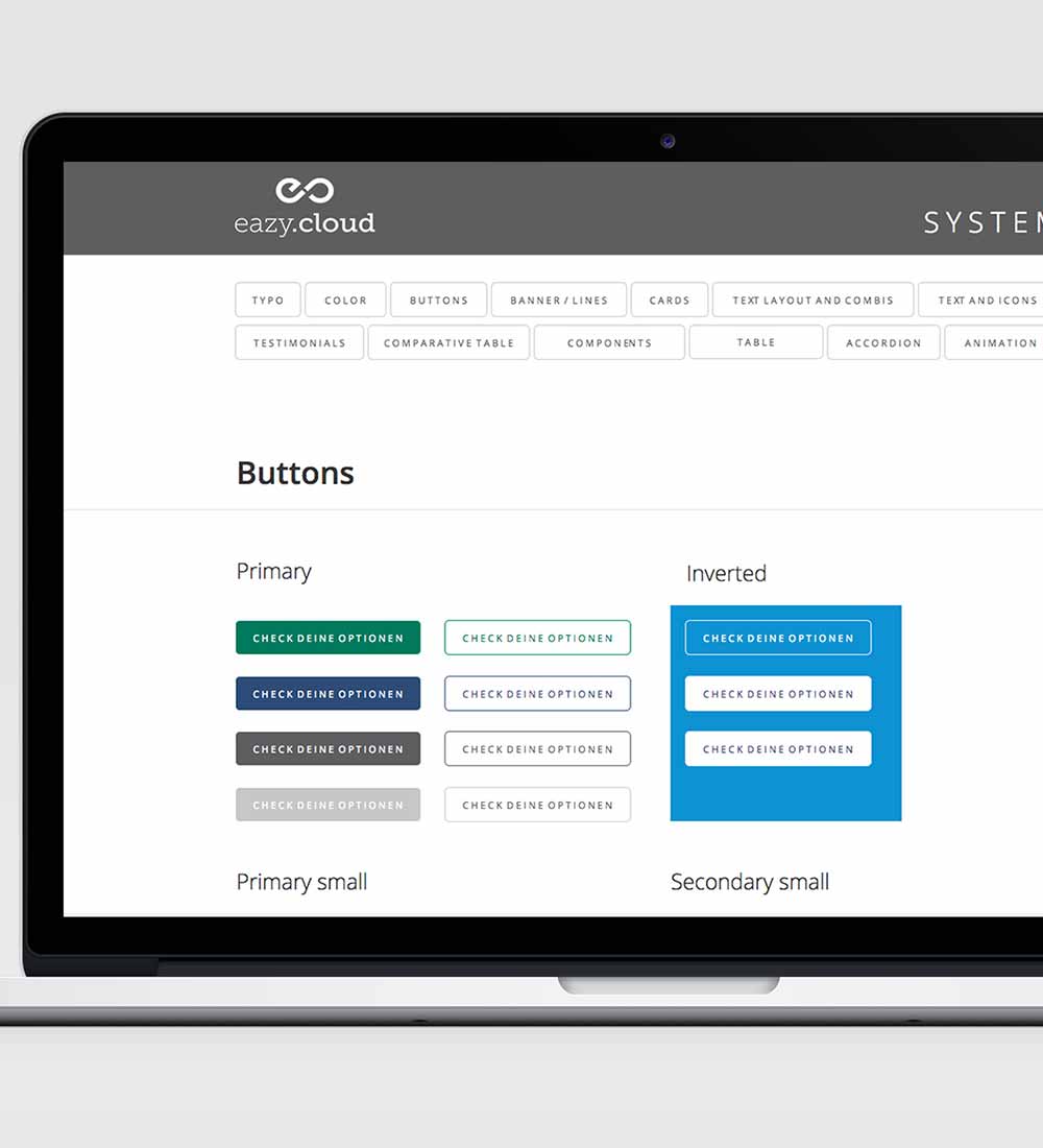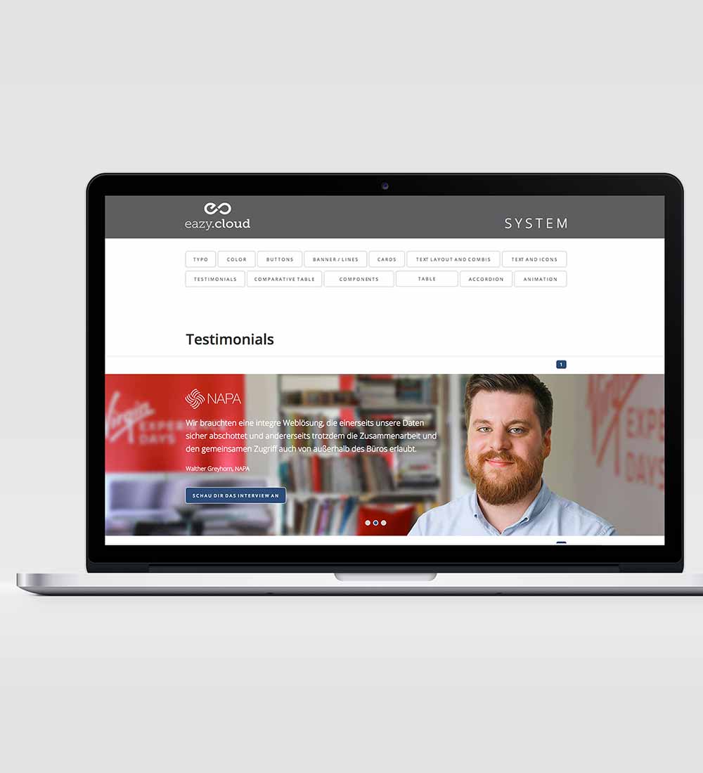 Final habe ich das gesamte Paket als Website simuliert und ein Designsystem erstellt, welches dem Kunden aber auch dem Programmierer helfen sollte, alle wichtigen Einzelbausteine des Designs und deren Komponenten übersichtlich und strukturiert einzusehen.