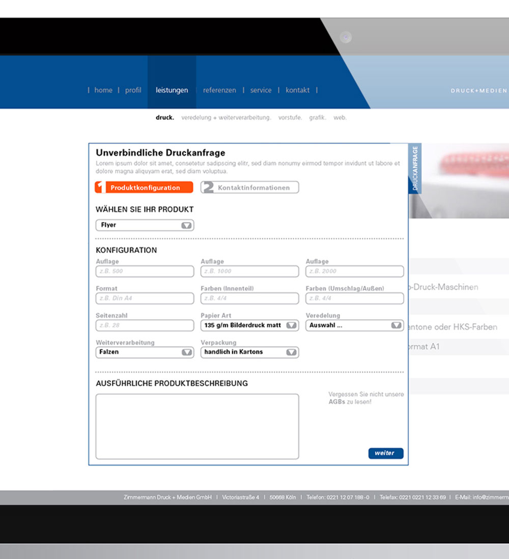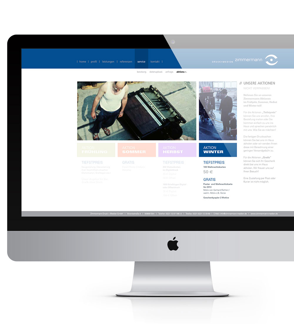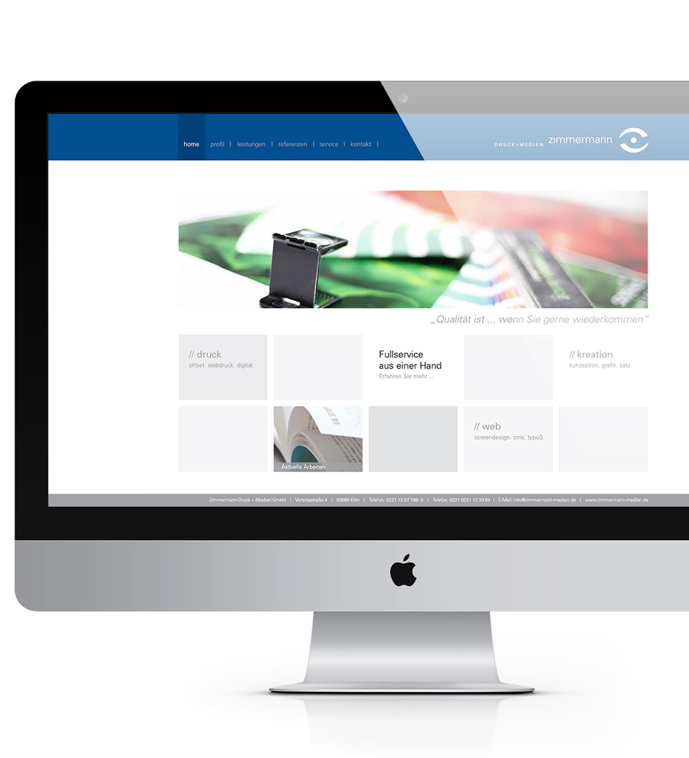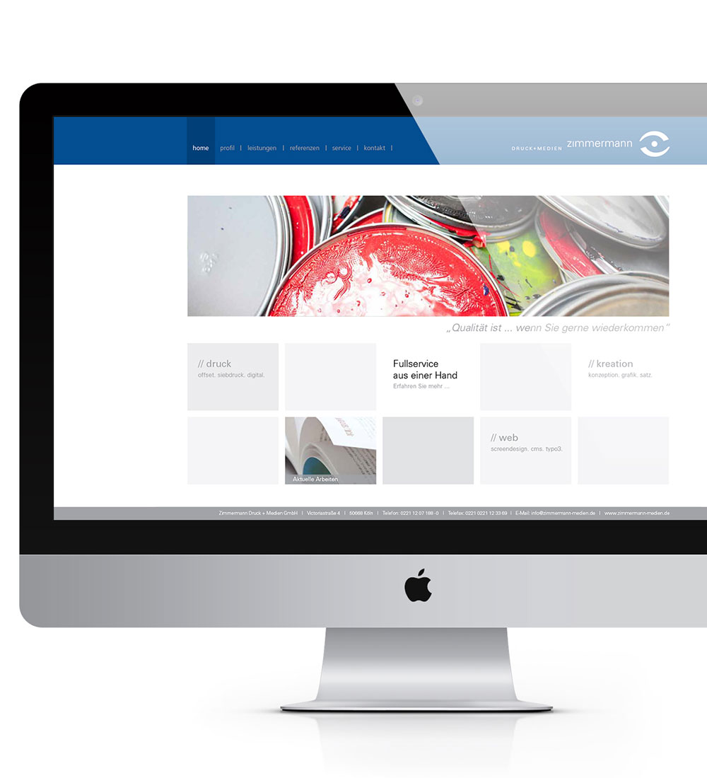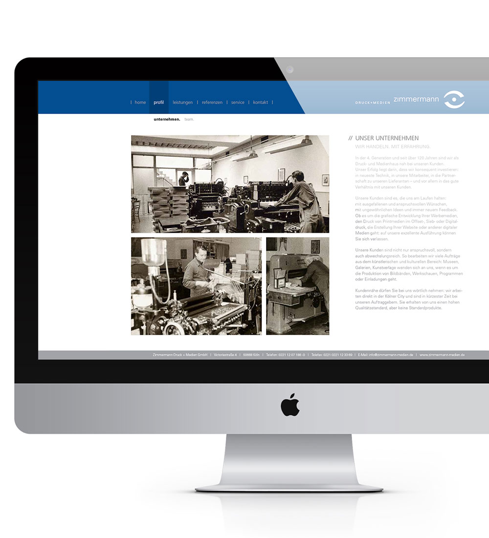 Relaunch und Redesign des Internetauftritts. Durch großflächige Bilder und einem strukturierterem Aufbau der Inhalte wurde die Firma Zimmermann zeitgemäß ins rechte Licht gesetzt und präsentiert.